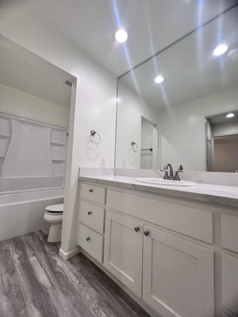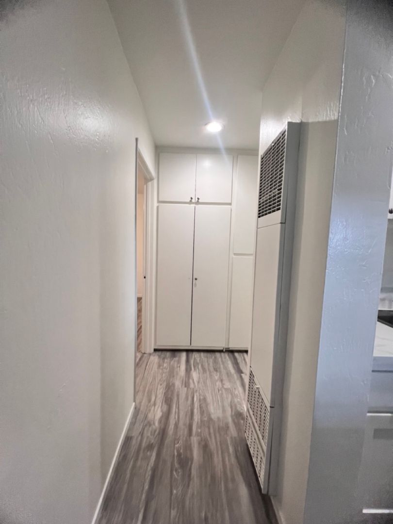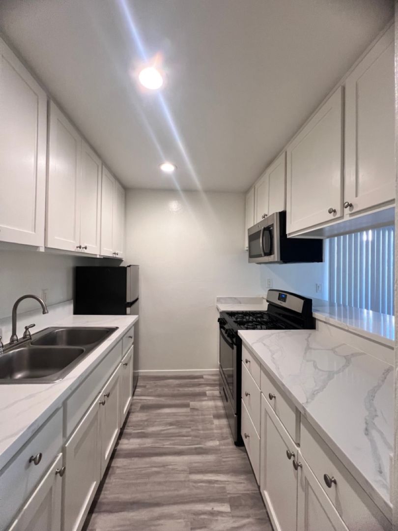 Our newly renovated one-bedroom, one-bathroom apartments offers a perfect blend of comfort and style. Step inside and discover a spacious living area with a cozy fireplace, ideal for those chilly evenings. The apartment features vinyl flooring throughout the main living areas which is not only stylish but also easy to clean and maintain. The carpet in the bedroom and walk-in closet adds warmth and comfort to your living space. The modern kitchen boasts stainless steel appliances, perfect for preparing gourmet meals. Enjoy the convenience of a walk-in closet, and an additional storage room located right outside your unit, providing ample storage space for all your belongings. The private patio offers a serene spot to enjoy your morning coffee or simply soak up the California sunshine.