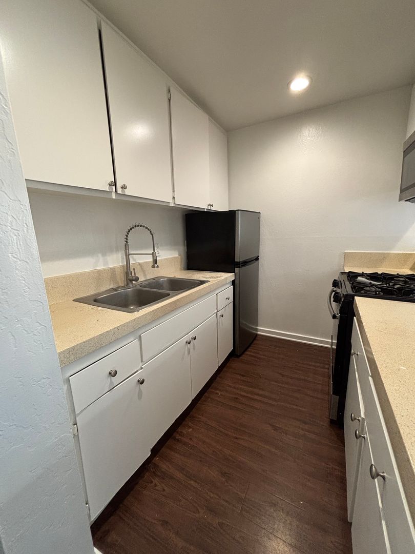 This first-floor apartment, newly renovated, features 1 bedroom, 1 bathroom, a detached one-car garage, and a private patio perfect for enjoying your morning coffee or simply soak up the California sunshine.
